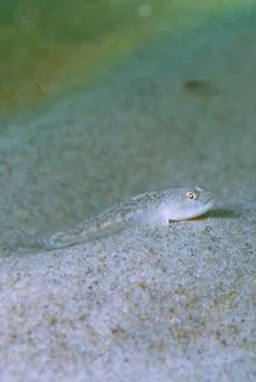 När de inte gömmer sig under musselskal så "hoppar" sandstubben gärna omkring för att retas med stackars fotografer.