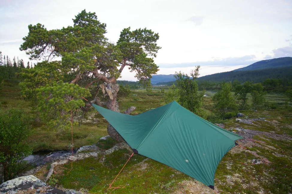 ... i hand skulle jag tagit ett innertält som skydd mot svidarna. SMHI lovade regn så det blev tarp...