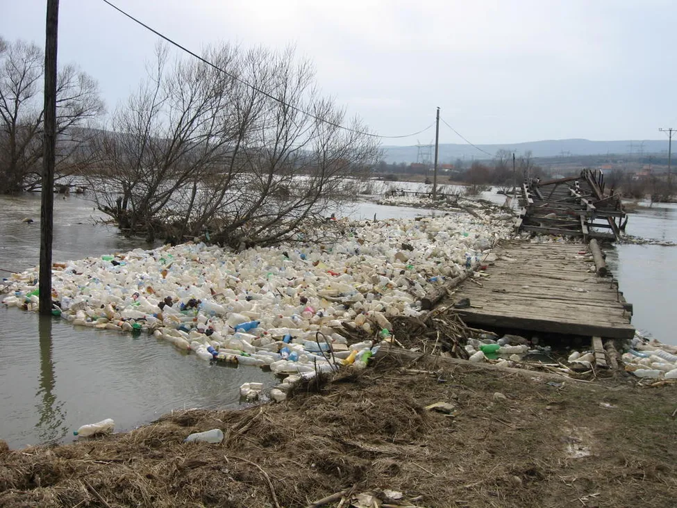 Provade att trampa ut lite på flaskorna...men ville inte ramla i de vattnet..