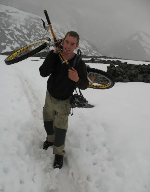 Påväg mot toppen med cykeln såklart!