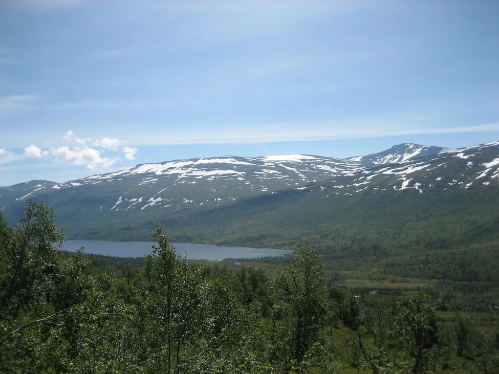 Vi utgick från gården Storli längst in i dalen, gick upp mot toppen okla, toppen på bilden är kråkvasstind, 1700 möh.