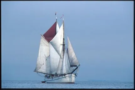Eskadersegling sllutet av juli 2000, Stockholms skjärgård. Strax norr möja (Kallskär skymtar i bakgrunden) mötte vi denna skuta