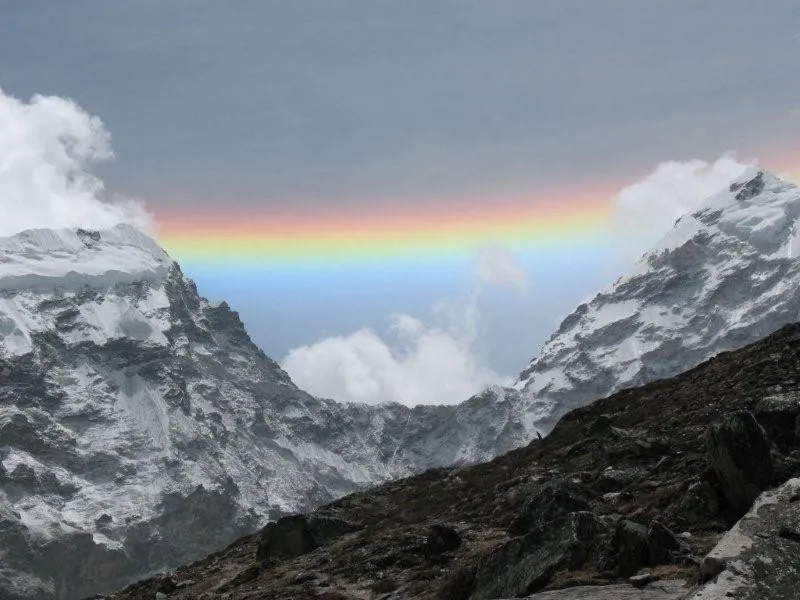 Regn och snö och fantastiska regnbågar... Detta kort är taget från mitt tält i baslägret.