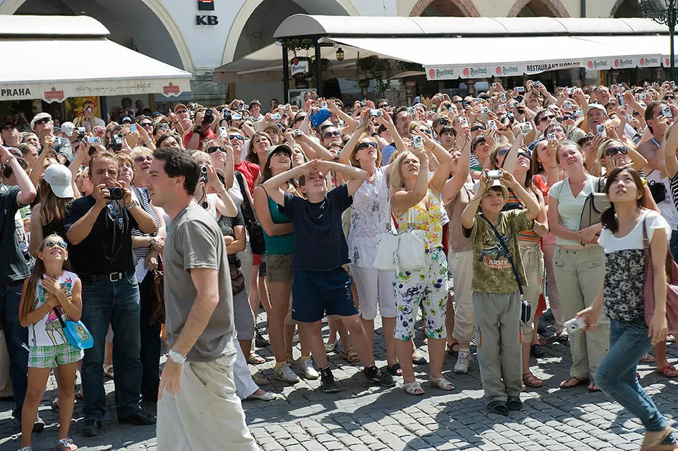 Hittade den här folksamlingen på en gata i Prag. Jag avslöjar inte vad de tittar på, det är upp till er att fundera.
