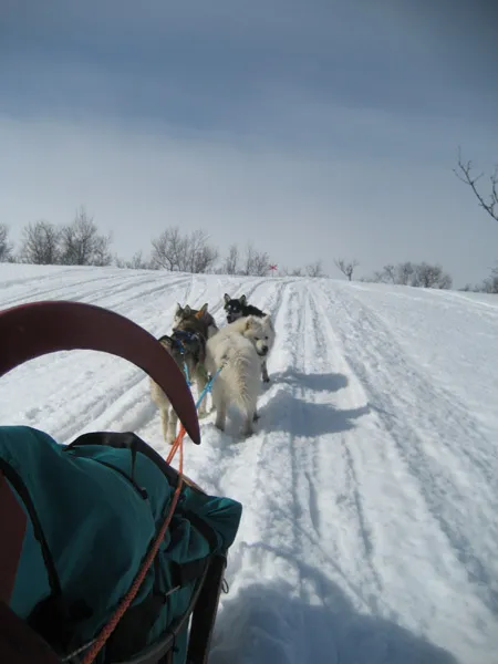 på väg upp för fjällkanten, nedanför härjehågna