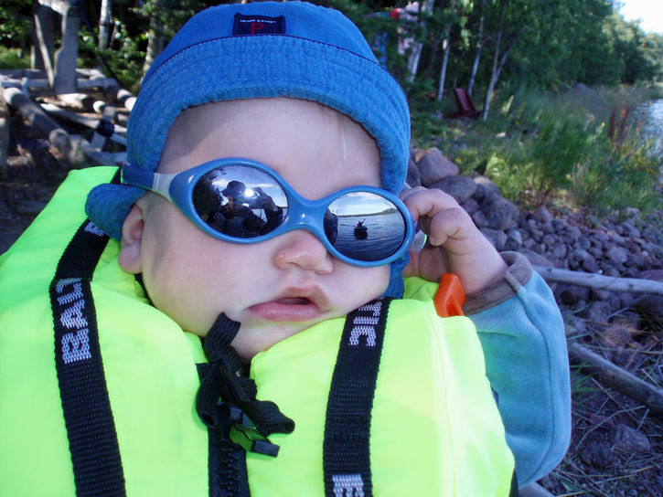 Bästa tregenerationersbild jag sett! Pappa(?) i ena ögat, morfar i det andra och Malte själv bakom sina solglasögon! Lysande!