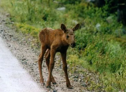 En nästan helt nyfödd älgkalv som jag mötte på vägen mellan Svartnäs och Svabensverk i östra Dalarna.