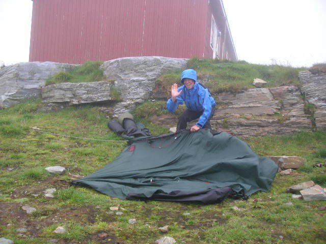 Blåsigt värre, men vi skulle ju upp på fjället och tälta, dåå ska vi tälta! Vi kan ju tillägga så här i efterhand att sömnbristen blev stor denne dag!