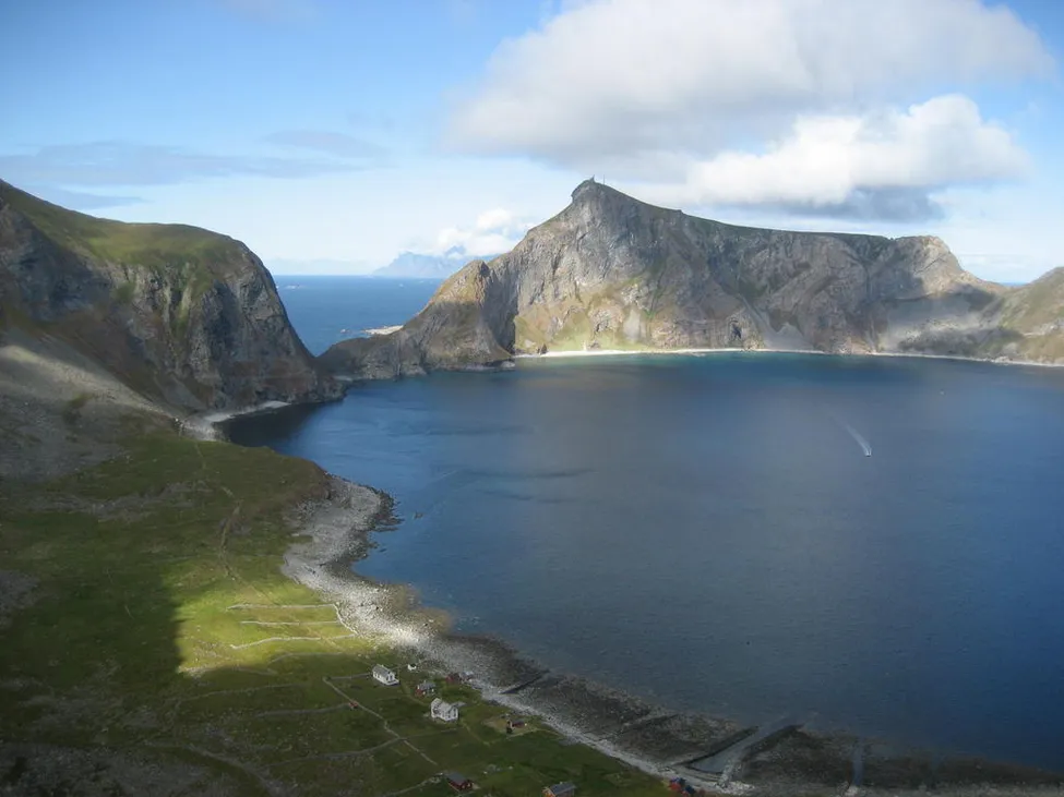 Ja det var otroligt vakkert der. Dom husene man ser er faktisk en frånflyttat liten stad som heter Måstad. Det gikk ingen väg dit og ca 150 personer bodde der fram til 70-tallet. Innbyggerene levde blant annet av det de kunne höste från Lundefuglene i fuglefjellet. Tyvär var fuglefjellet tomt när jeg var der.