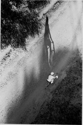 OkŠnd cyklist susar fram under viadukt pŒ Kungsholmen, Stockholm.