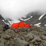 Morgonen efter att vi gått Trepassleden och vädret blev genast sämre. Underlaget var tämligen hårt.