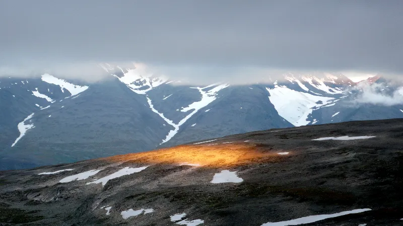 Det blev denna lustiga effekt av att solen hittade ett hål i ett annars ganska massivt molntäcke. Jag tog bilden vid halv sextiden på morgonen.