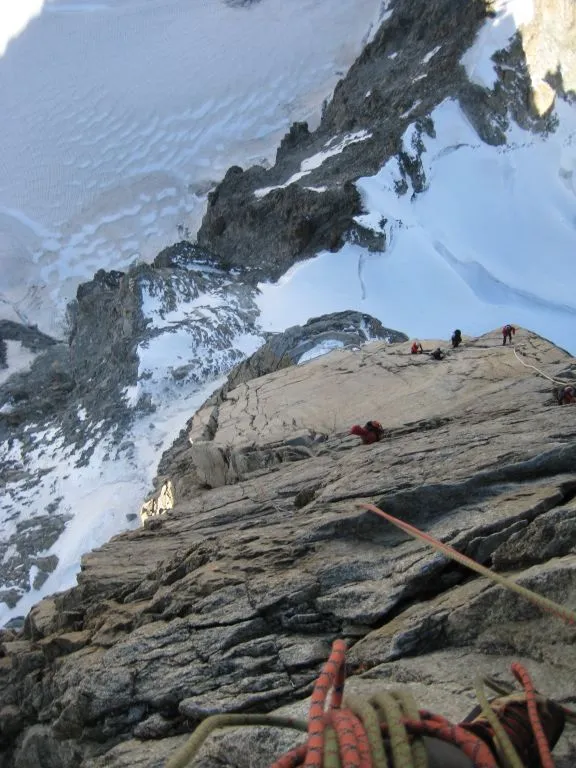 Alpinklippklättring i Frankrike på Jättens Tand som ligger i Vita Dalen helt nära Mont Blanc.