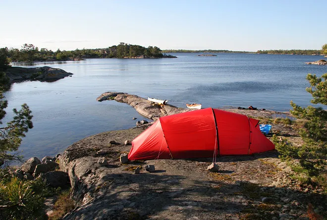 Fin lägerplats på fin ö. Fin vy mot horisonten i öster.