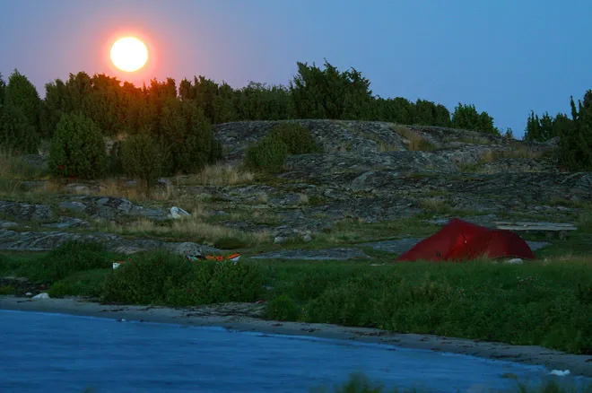 Trevlig ö med fina tältplatser och horisontvy om man så vill.