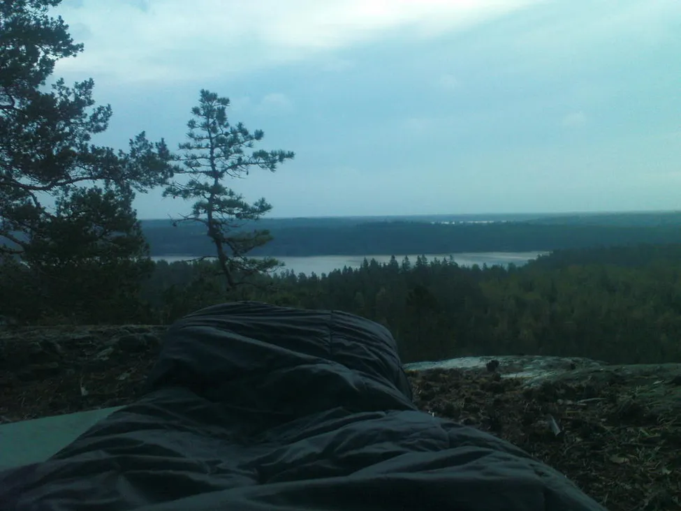 Efter en natt i sovsäck under bar himmel.