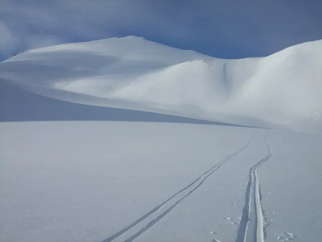 Kul att du gillar bilden! Kan meddela att det var min turkamrat Christian som stod för de "krokiga" spåren... Han han ännu inte helt accepterat att skidorna går fortare i nerförsbacke, och kör med stighudar både upp och ner, bara för säkerhets skull ;-) Så båda spåren är nerför faktiskt.. Om du tittar noga så ser du att den som gått i det krokiga spåret dragit pulka...