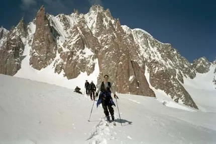 På väg till Italien från Aiguille du Midi. Solen stekte hos oss men i Chamonixdalen var det mulet