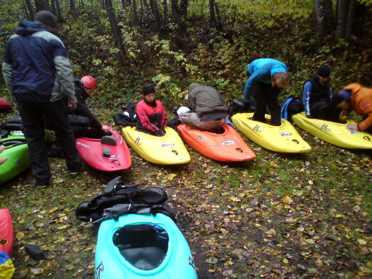 Färgglada kajaker laddade för dagens paddling