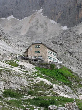Jag vill inte vara småaktig, men du menar inte möjligen Langkofelhütte? Då blir det lättare att placera motivet.