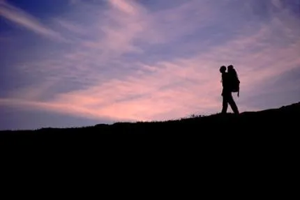 Fredrik vandrar i skymningen.