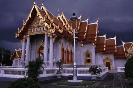 Rama den femtes tempel i Bangkok. Straxt innan ett monsunregn.