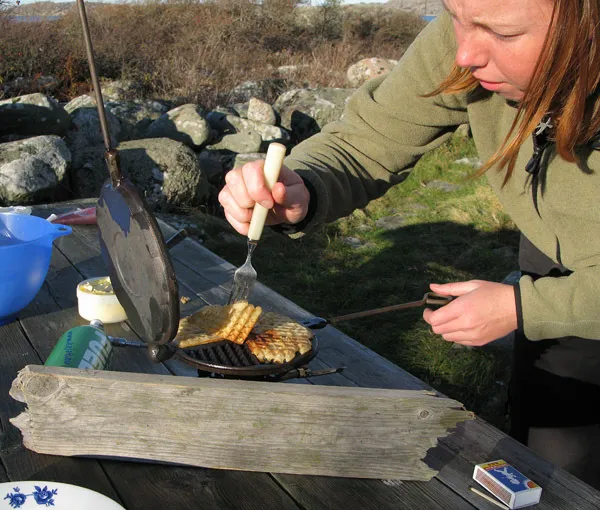 Finfin andrafrukost; våfflor, grädde och hallonsylt.