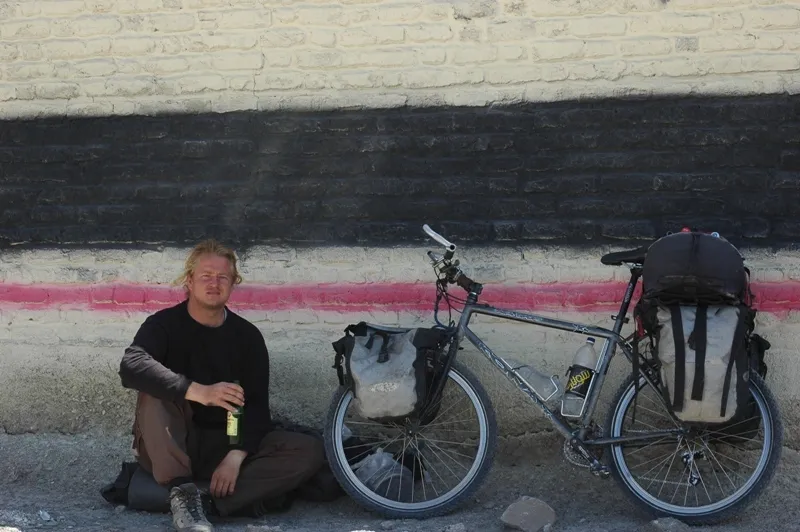 Firade i Iran att cykeln hade rullat 39 000 km. Firade med alkoholfri öl och cashewnötter.