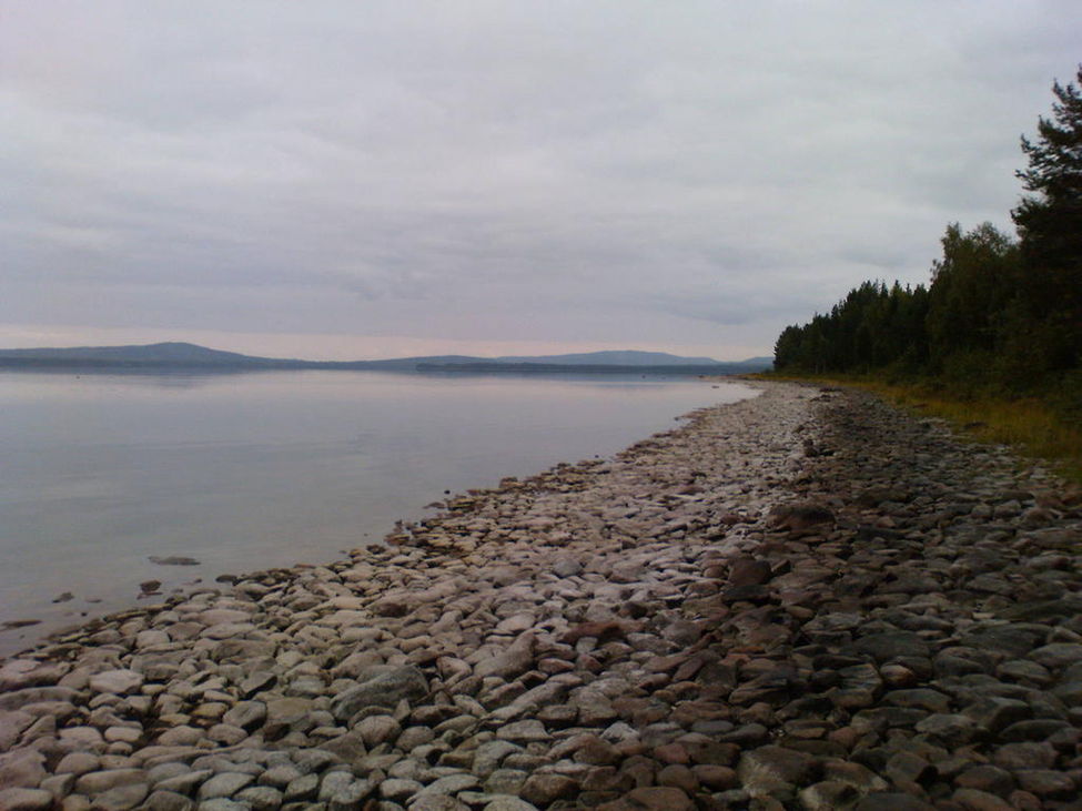 Det jag saknar är lite mer text än bara rubriken "Siljan". Kanske om hur vattenståndet brukar variera, om man vet det. Bilden är klassiskt enkelt och bra komponerad. De två tonerna i strandstenen är intressant (och snyggt).