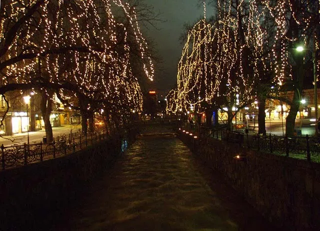 Ljus längs Fyrisån på kvällen i november