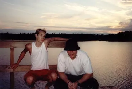 Här sitter jag (med hatten) & Robin efter en heldag med våra inlines. Nu tar vi en paus vid Flatenbadet efter ca 7 mil på inlines :]