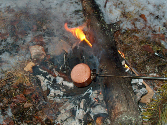 Korvgrillning vid Lakaträskparkering, 081108 nysnö, inget byte och ingen jakt imorgon söndag. Detta var mitt pass den dagen.