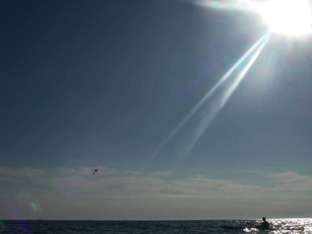 Paddling mellan Svenska stenarana och Skarvs skärgård. Under passagen så passerade flertalet Tordmular vilka nyfiket tog några extra rundor runt kajakerna. Till vänster på bilden syns en.