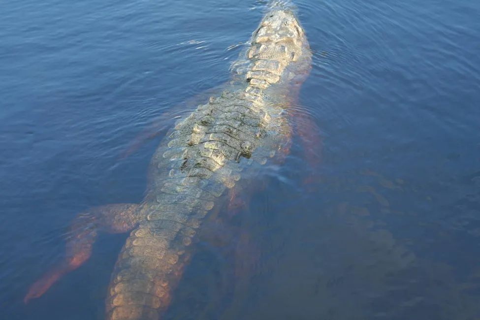 Snacka om att hamna i underläge om man råkar träffa på en krokodil i vattnet, även om det är en liten krokodil!