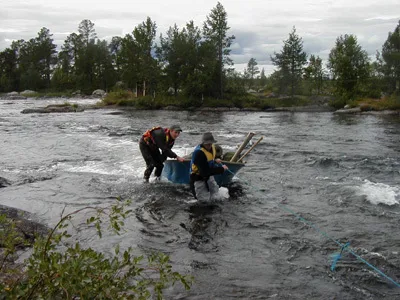 Båtarna fick lite hjälp både nedför och uppför det stenbemängda harrparadis som piteälvens forsar utgör.