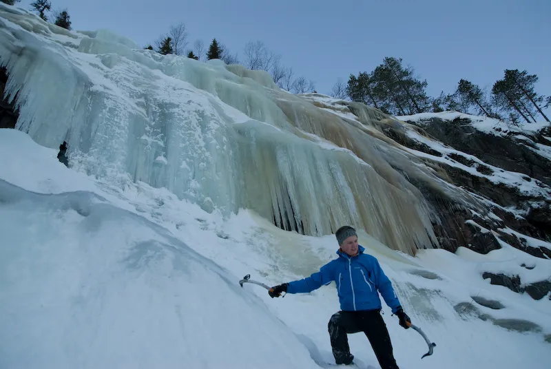 Hittade i somras en klippa som det rann en massa vatten på. Chansade på att det hade bildats is där så for dit för att testa mina nya isyxor. Tror att stället har ganska bra potential, vet ingen som har klättrat där tidigare. Ligger ca 4 söder om Sveg. Positionen på kartan är ungefärlig.