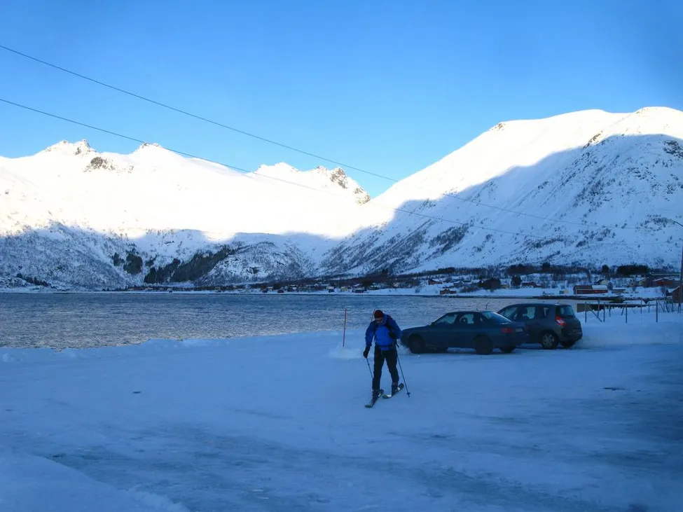 På parkeringen till matbutiken på skinnvollen,Laupstad. Startpunkt før geitgaljen 1085møh.