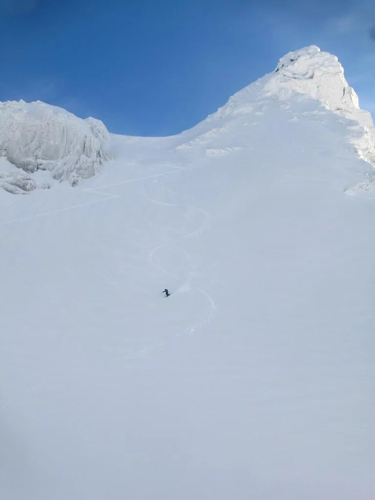 Anders lägger fina svängar ner med toppen av Geitgaljen 1085møh bakom sig. Vi vände rätt under ryggen pga is och inga stegjärn.