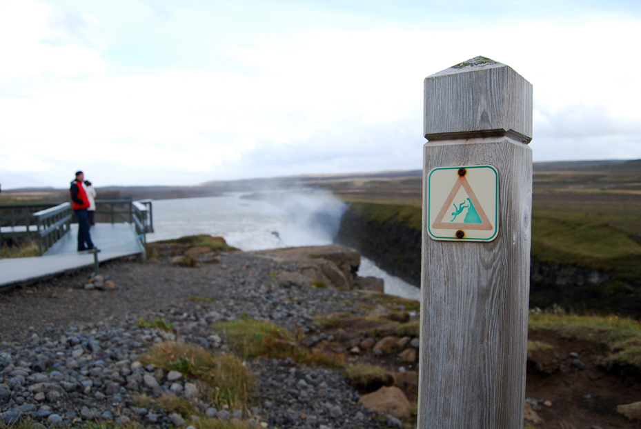 Trillar man över kanten här hamnar man i Gullfoss-ravinen. Det är INTE att rekommendera!