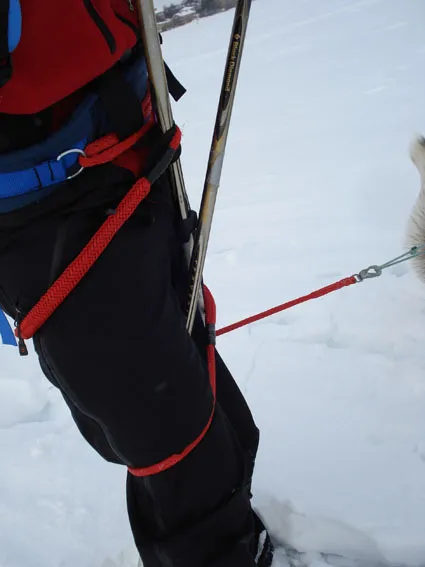 Easy var så pigg så hon kunde inte låta bli att skutta två varv runt mig på väg ut på Storsjöns is... Efter en stund hade jag trasslat ut mig, och vi var på väg åt samma håll - hon först och jag efter! :-)