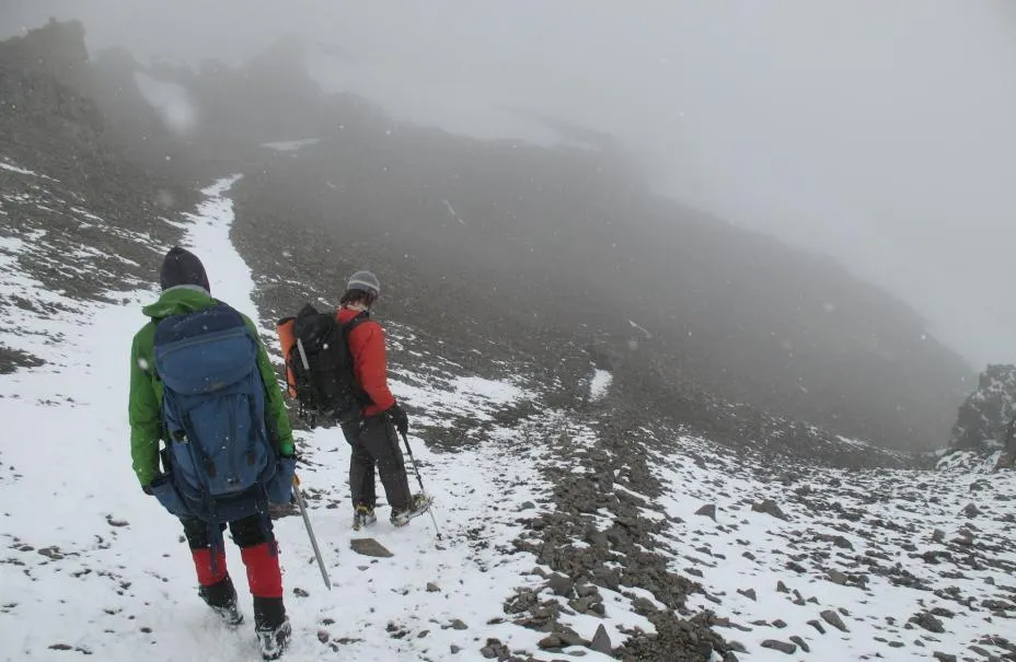 Vi hade kalasbra väder på toppen, men på nervägen så drog moln över och även snö började falla.