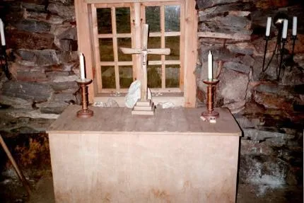 Albert 14år tog bilden, och det var han som bar in den vita stenen bakom korset och städade på altaret.