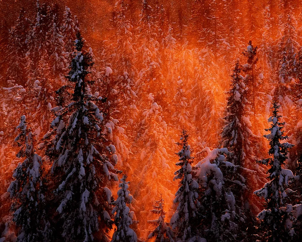 Läcker bild.Hela skogen står i "brand".