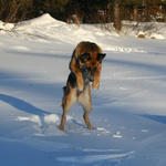 Skön bild. Ser ut som han ska hoppa och dyka efter nått. Ligger det något intressant under snön?