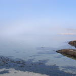 Nu börjar dimman över Dannemarken att lätta. Paddlingen hemåt i skön vårsol.