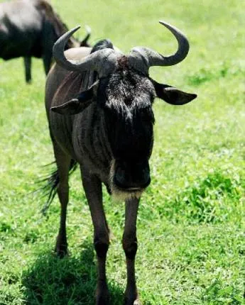 En utav miljontals gnuer och zebror som vandrar efter regnen på de stora slätterna i Tanzania
