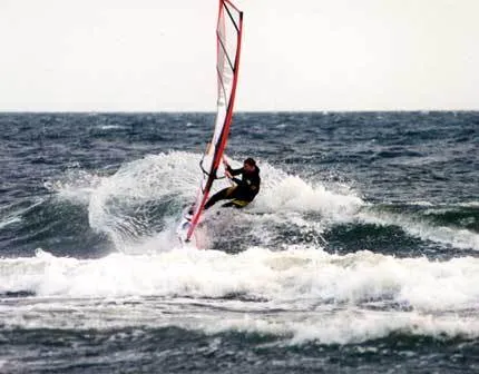 Jens Guldstrand rider vågor tidigt våren 2001 vid Löderups Strandbad.