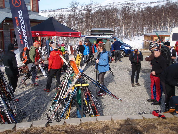 Morgon 24:e april. Folk, turer & prylar i härlig blandning. Utanför Storulvån Fjällstation