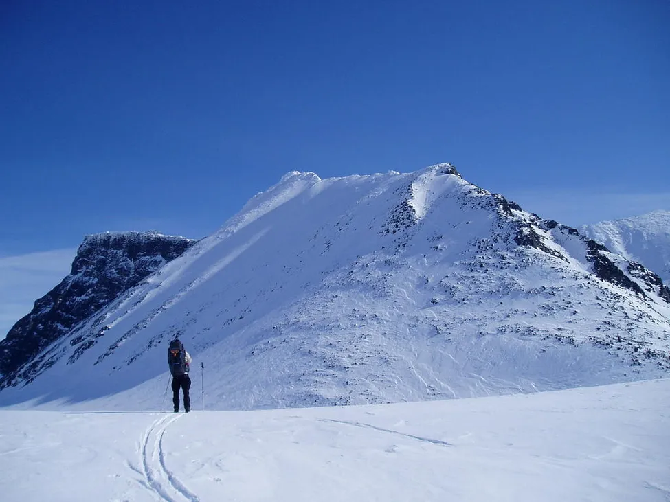 på väg att bestiga Högsat toppen i Sarek