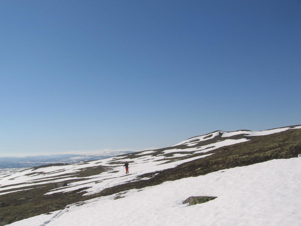 Nu börjar snön mjukna upp och vi får noga planera vår fortsattta färd för att hitta snöpartier att åka på.
